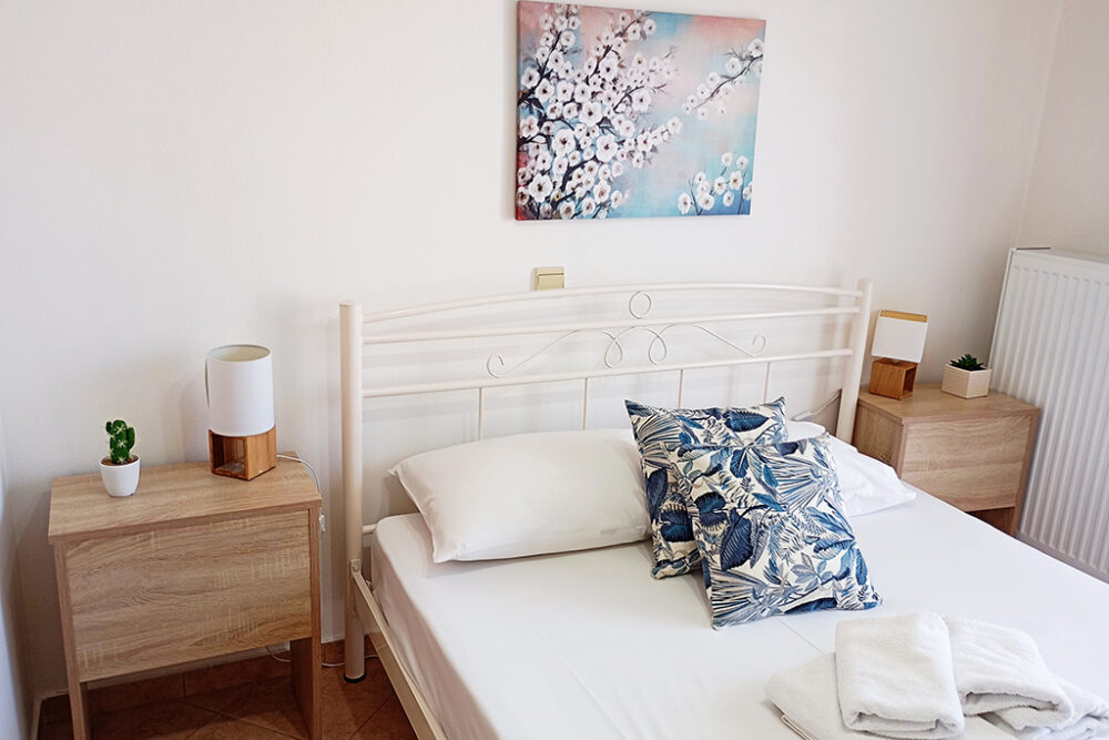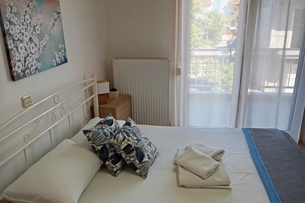 Открийте апартамент Стела, апартамент с 3 спални, който се намира на 1-вия етаж на 3-етажна сграда и се намира пред плажа и на 600 м от центъра на Керамоти. В нея могат да се настанят до 7 човека, което я прави идеална за две семейства или група хора, които желаят да прекарат почивката си на морско място. Пространството с отворен план с напълно оборудвана кухня с маса за хранене, 3 спални, 2 бани и стилна всекидневна, с изглед към района и морето.