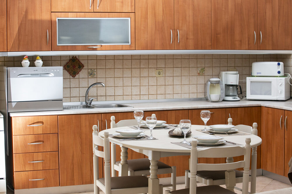 Има удобства като климатик, хладилник, фризер, електрическа готварска печка и микровълнова печка. Освен това има пералня, съдомиялна, телевизор и Wi-Fi, както и електрическо барбекю и цялото оборудване за приготвяне и сервиране на всяко ястие.