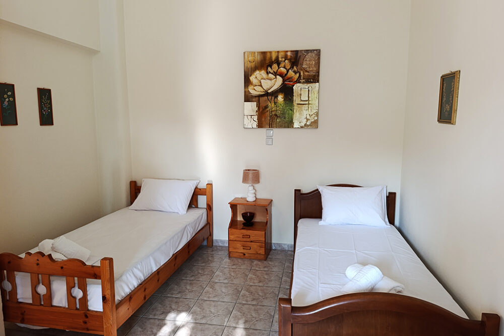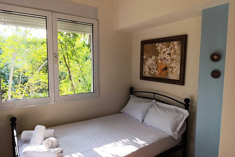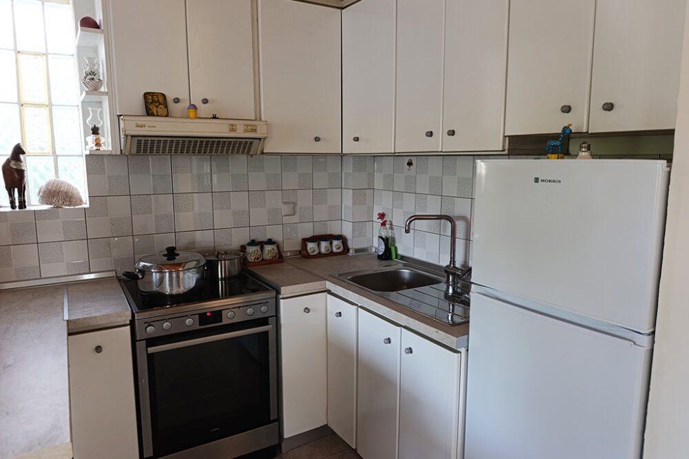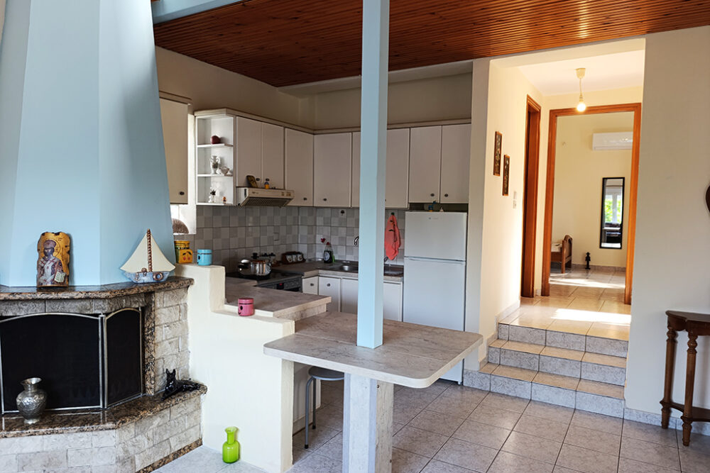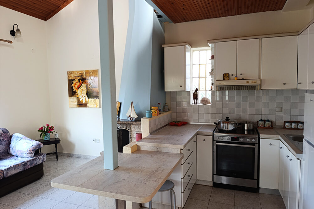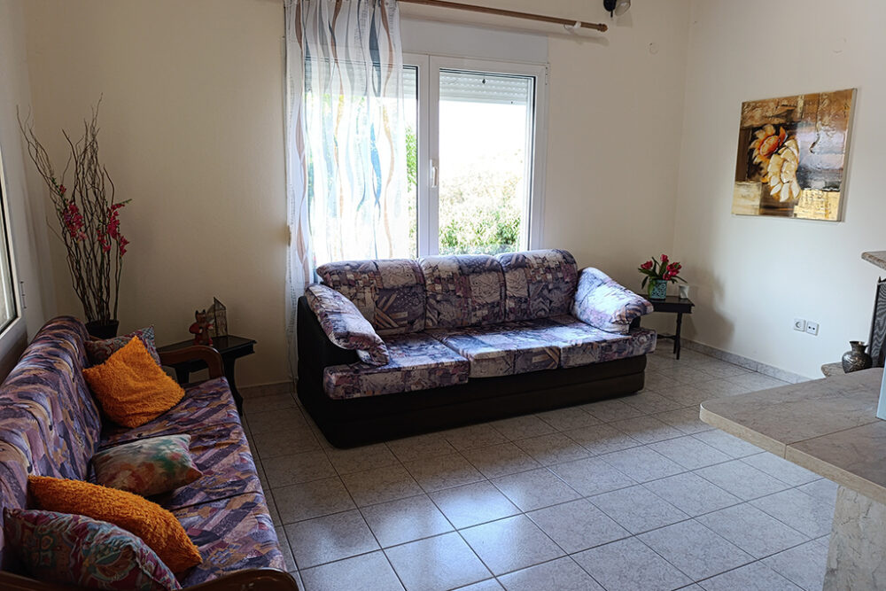Хубави мебели, удобна всекидневна, напълно оборудвана кухня, телевизор, климатик във всяка спалня са само част от удобствата, които ще намерите в тази къща. Разположена на 200 м от плажа и на 350 м от центъра на Керамоти, ще можете да стигнете до всяко място за няколко минути. Има 2 спални (1 двойно легло и 2 единични легла), 1 баня с душ и балкони с изглед към градината. Освен това има удобства като хладилник с фризер, пералня, електрическа печка, Wi-Fi, барбекю и машина за филтърно кафе. Къщата разполага с двор с градински мебели и частен паркинг.