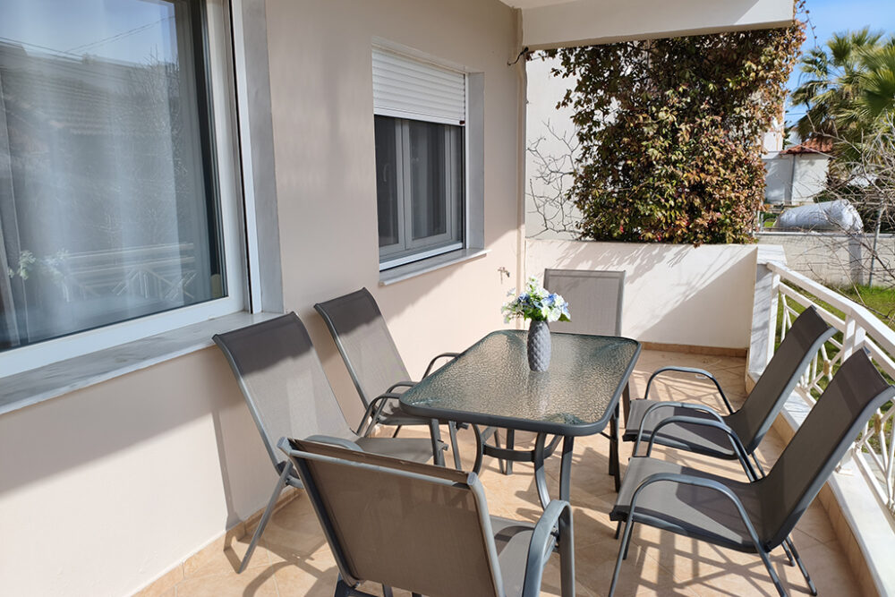 Къща Павлос е нова къща с 1 спалня с голяма градина с морава. Къщата е на 200 м от плажа и на 250 м от центъра на Керамоти. В него могат да се настанят до 4 души, което го прави идеален за семейство.