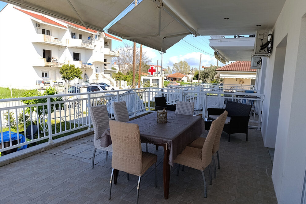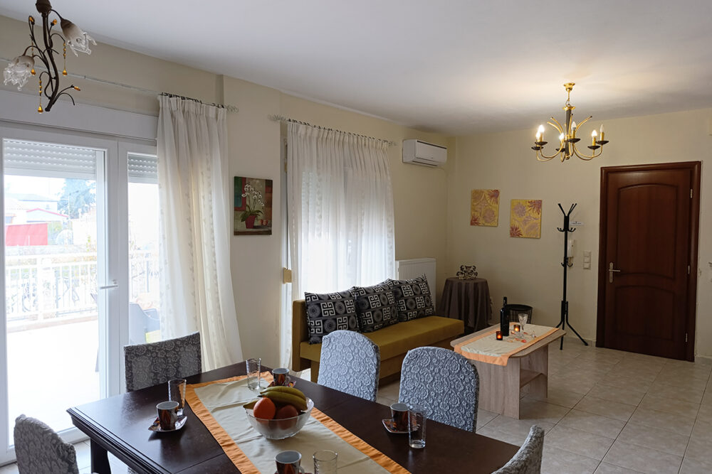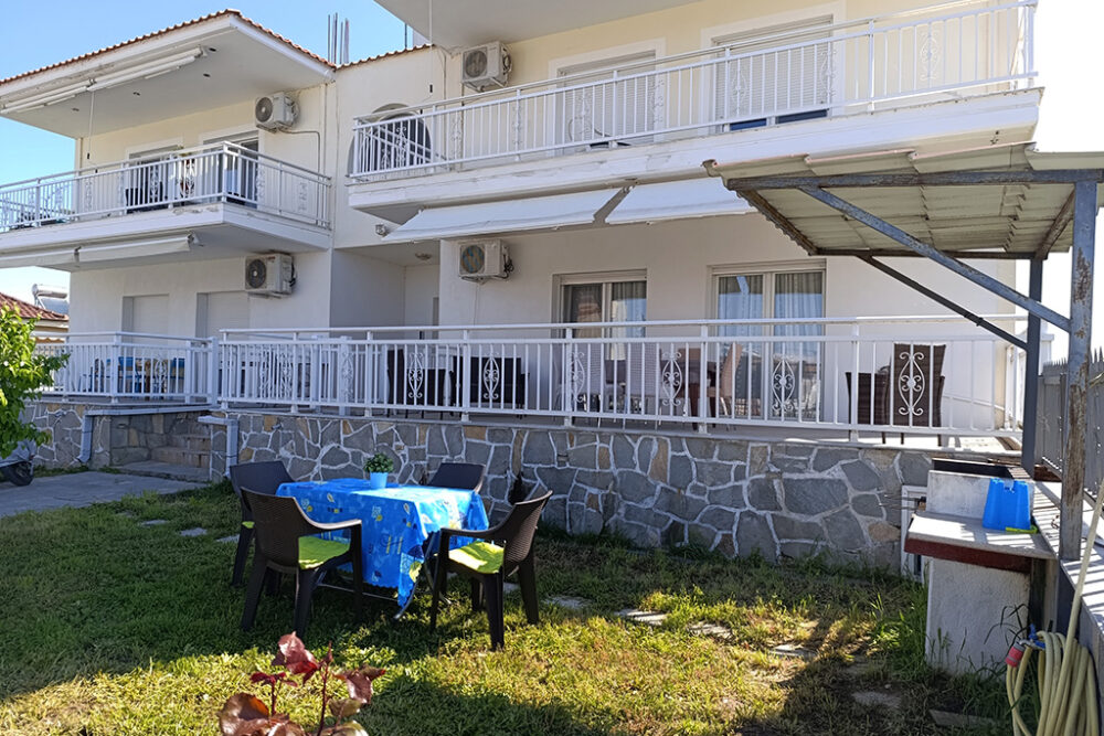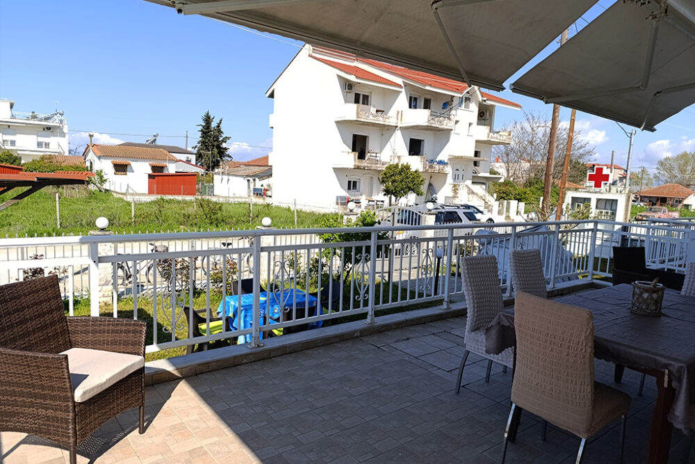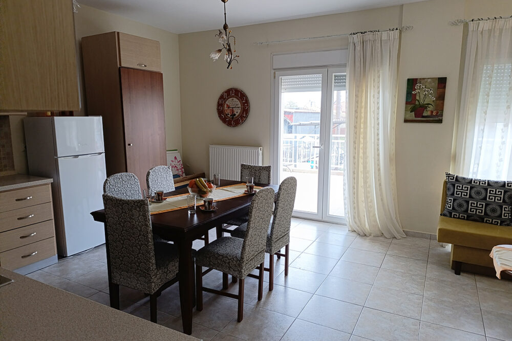 Discover apartment Angela which is located on the Ground floor (right side) of a two storey building. It is 350 m from the center and 750 m from the beach of Keramoti. The apartment can accommodate up to 8 people and therefore is considered “ideal” for a family or friends.