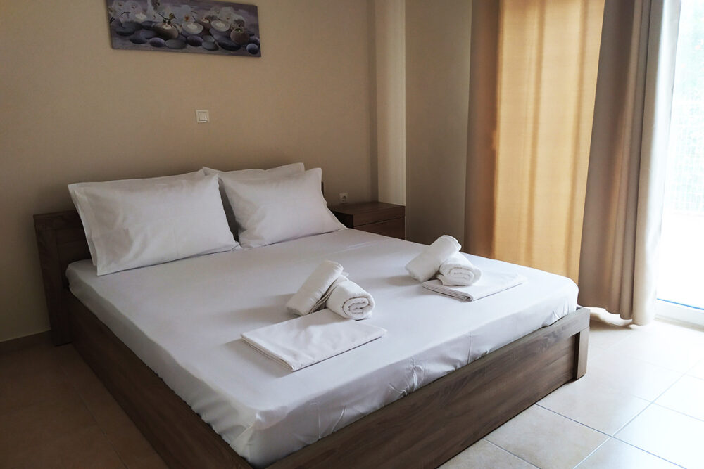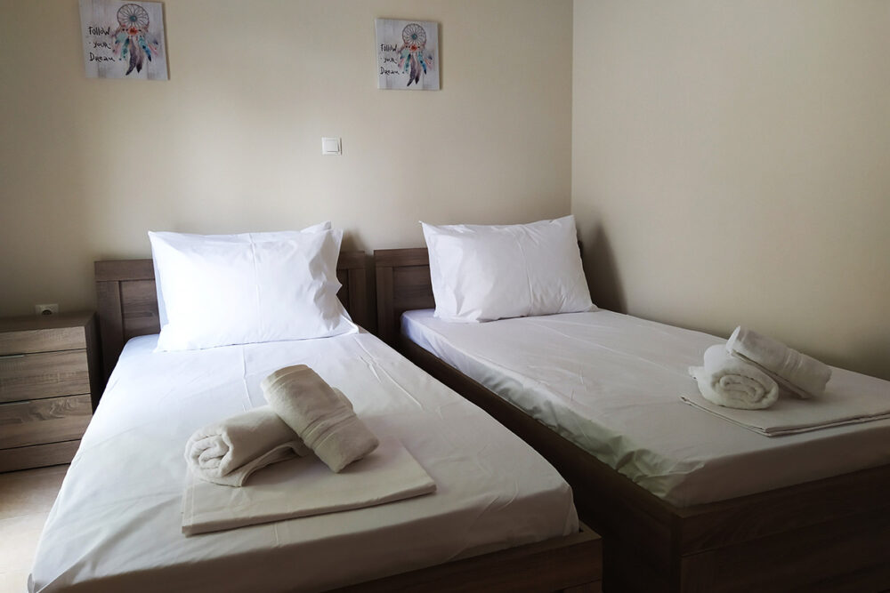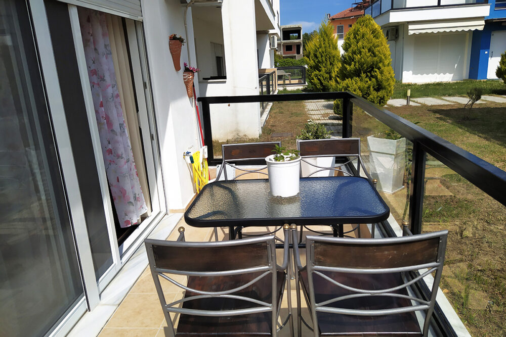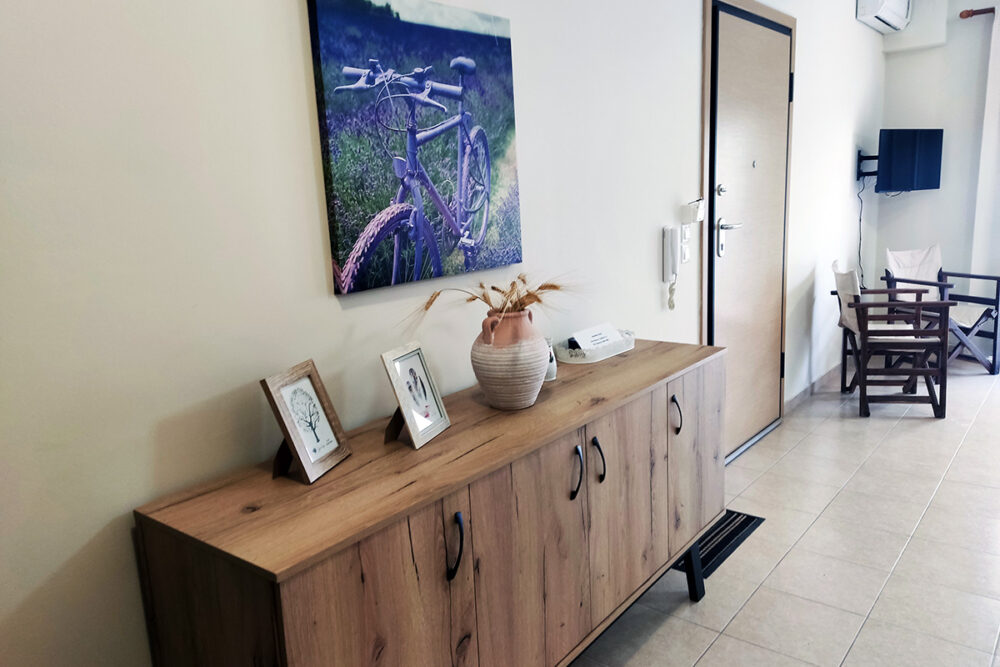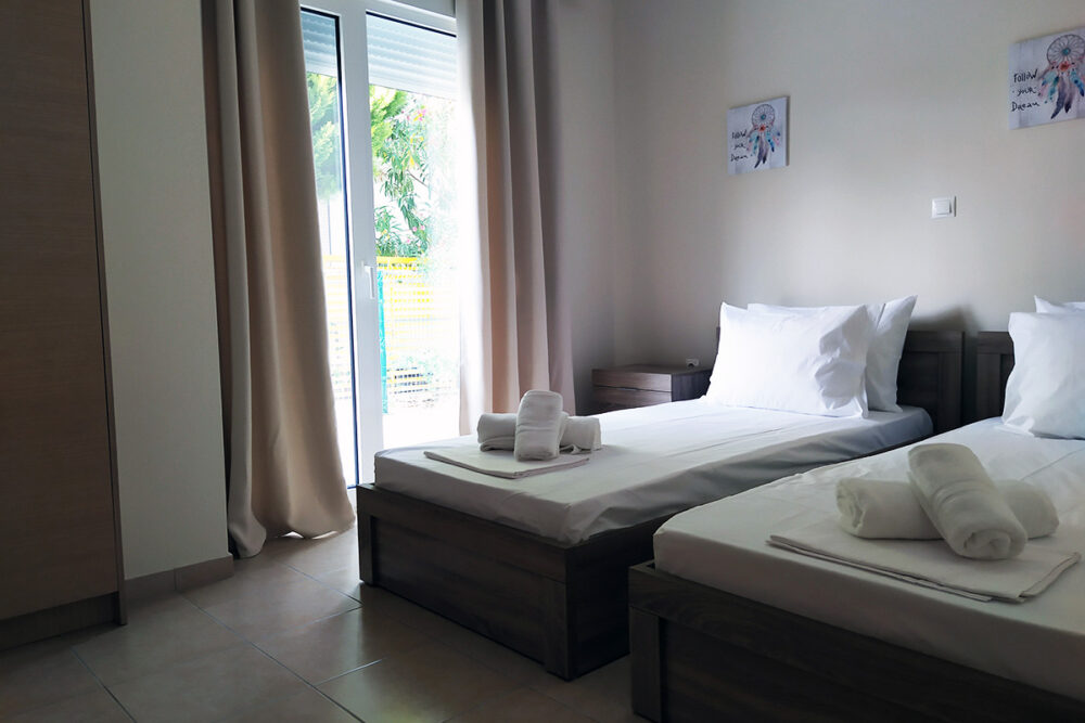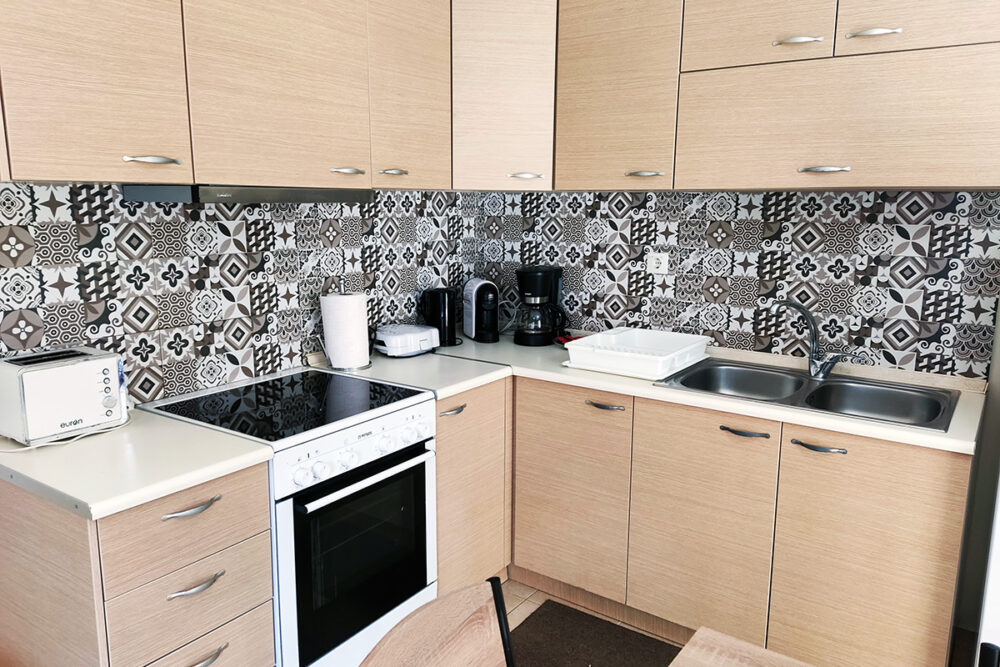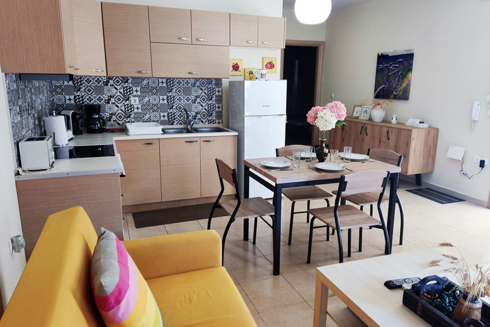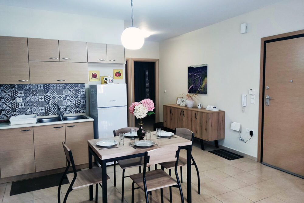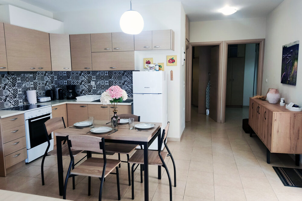 Discover apartment Eftalia, a 2 bedroom apartment which is located on the ground floor and it can accommodate up to 5 people therefore it is “ideal” for families or friends who would like to spend their vacation in a seaside place. The open-plan space with a fully equipped kitchen, 2 bedrooms, 1 bathroom and a stylish living area, overlooking the garden of the complex.