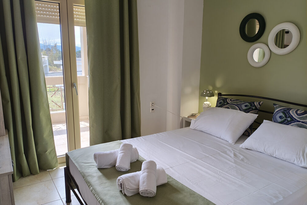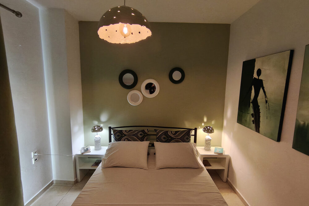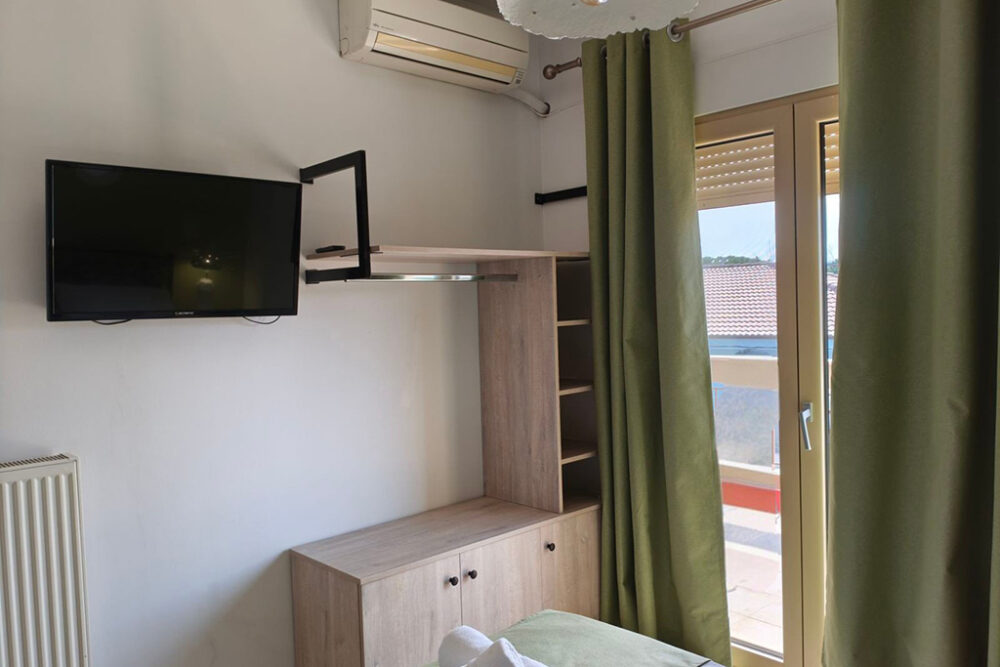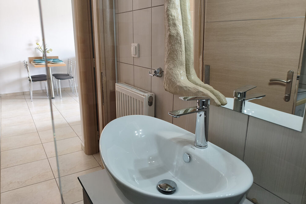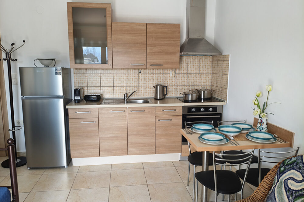 Apartment Kalipso, a newly built 1 bedroom apartment, is located on the 3rd floor of a three storey building. It is located 150 meters from the beach and 150m from the center of keramoti. It can accommodate up to 4 people (2 adults and 2 children or 3 adults), making it ideal for one family.