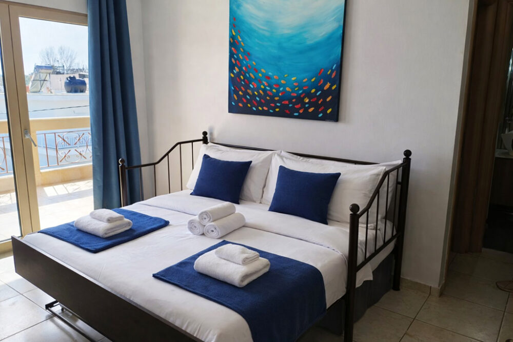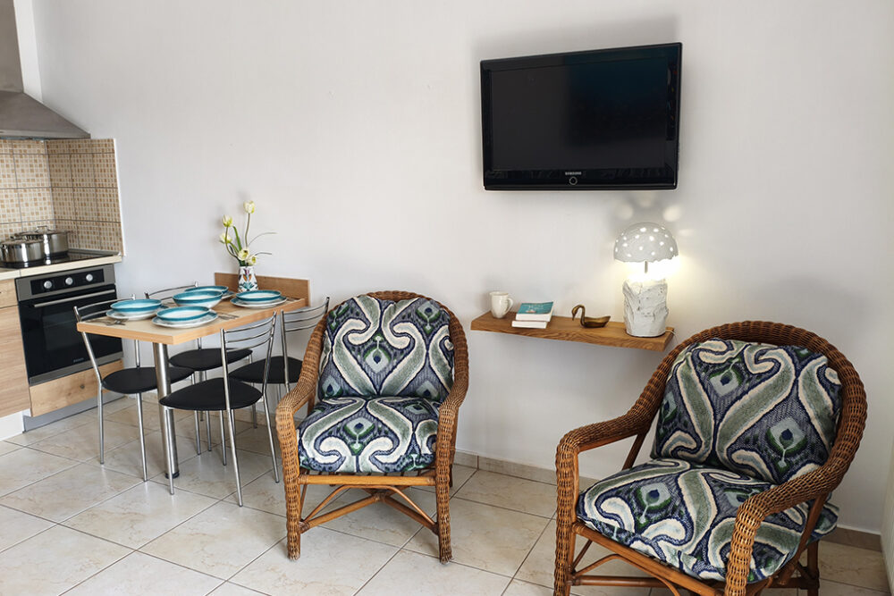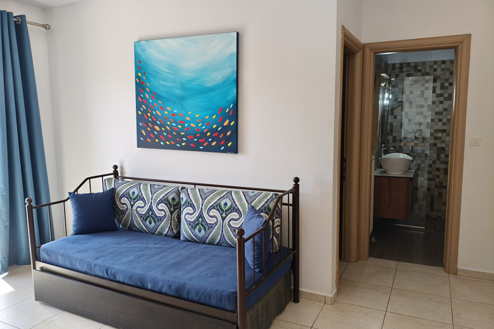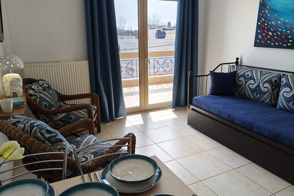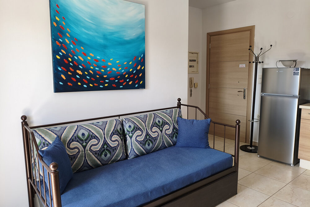 Discover apartment Kalipso, a 1 bedroom apartment which is located on the 3rd floor and it can accommodate up to 4 people ( 2 adults and 2 children or 3 adults) therefore it is “ideal” for families who would like to spend their vacation in a seaside place. The fully equipped kitchen, 1 bedrooms, 1 bathroom and a stylish living area, overlooking the area and the sea.