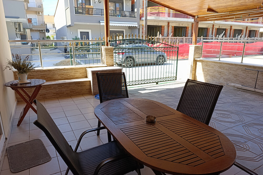 Nice furniture, a comfortable living room with sofa bed, a fully equipped kitchen, TV, air condition are just a few of the amenities you’ll find inside this house. Located 250 m from the beach and 250 m from the center of Keramoti, you will be able to reach any place in a few moments. There are 3 bedrooms ( 2 double and 1 single beds) and 1 bathroom with a shower. In addition, there are amenities such as fridge freezer, electric cooker, Wi-Fi and coffee machine. There is also a back terrace with outdoor equipment and private parking space. We handle everything so you can simply show up and start living.
